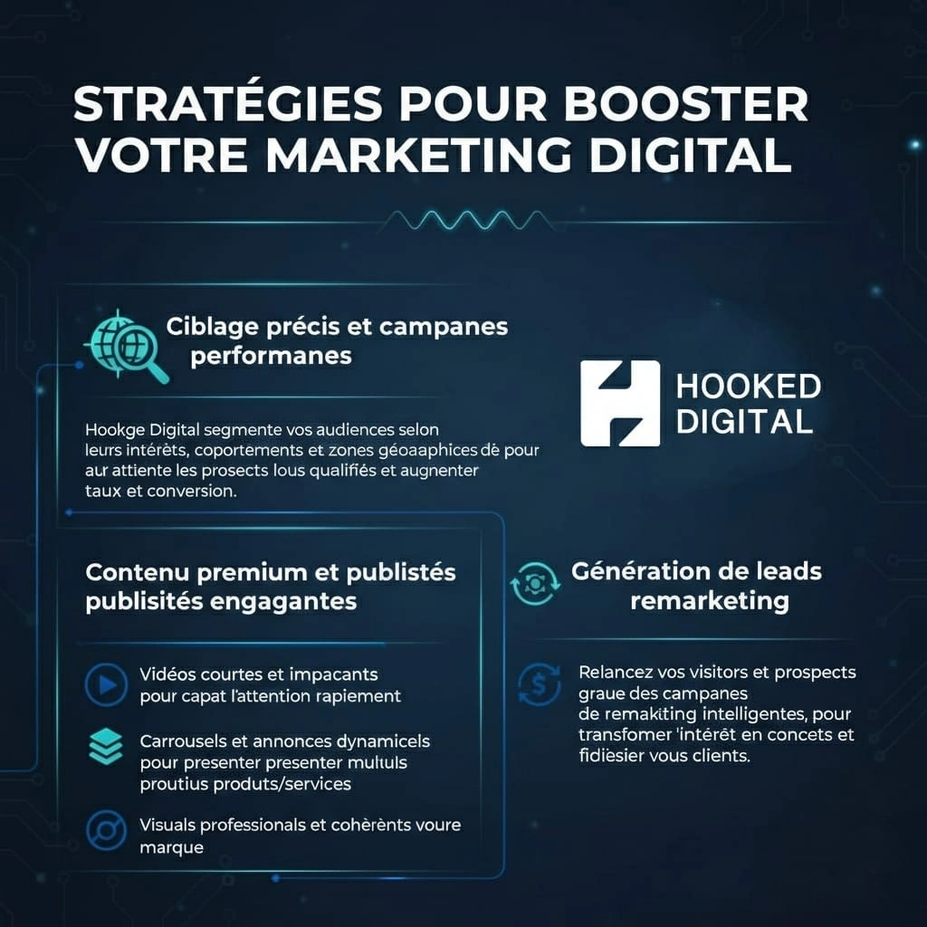 Grâce à des campagnes optimisées, du remarketing intelligent et du contenu premium, Hooked Digital maximise vos conversions et vos ventes.
